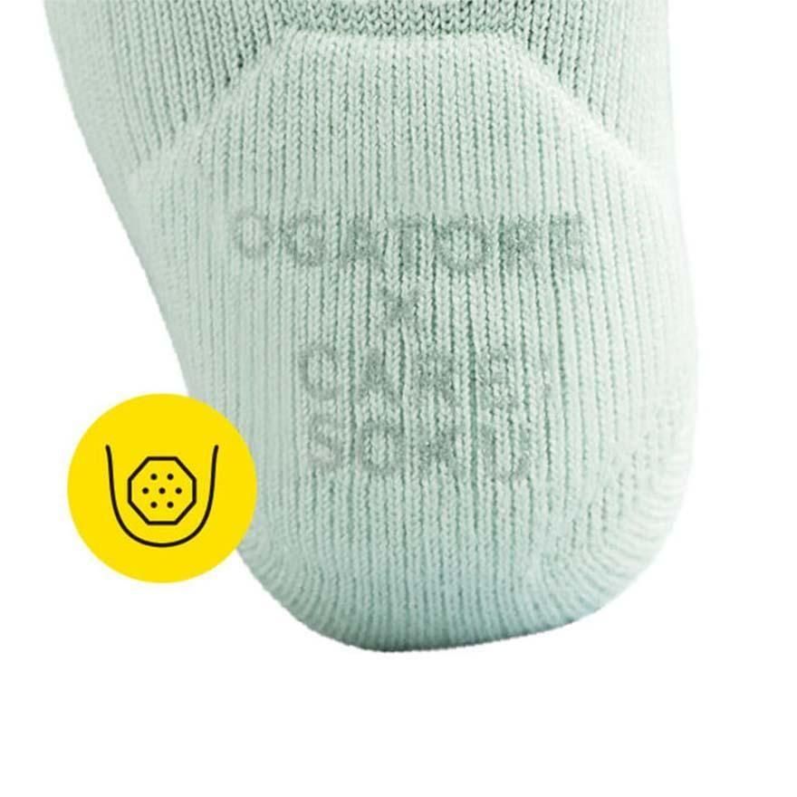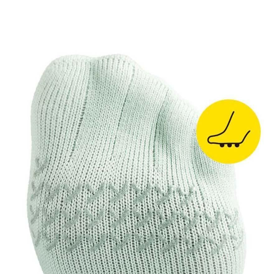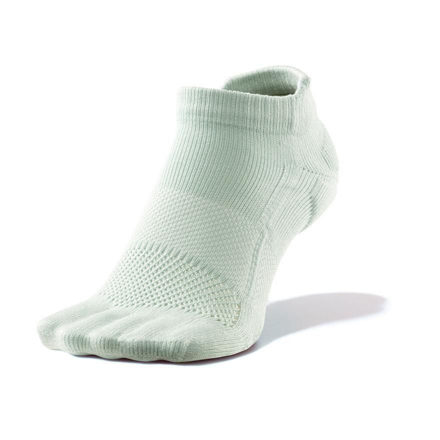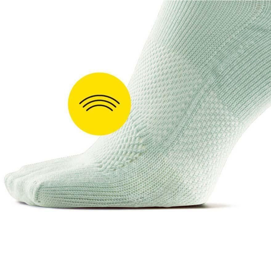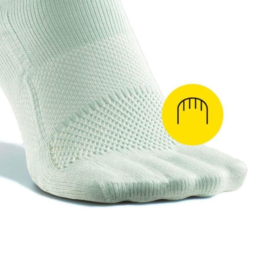 「ととのえる」をはくと、浮いた指が伸び広がり、より多く接地して重心バランスがととのいます。各指が連結しない一般的な「5本指靴下」よりも、高い効果を発揮します。足裏全体で地面をとらえることができるため、従来の靴下よりも健康につながる歩行が可能になります。